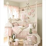 [***INCLUDED IN THIS SET: (1)Isabella 5 Piece Crib Bedding Set with Diaper Stacker] Features: -Pink and green fabrics with toile, soft velvet, star jacquard, woven gingham, embroidered rosebuds and sheer stripes.-Quilt is patchwork in pink, green, toile, soft velvet, star jacquard, woven gingham, embroidered rosebuds, and sheer stripes fabrics.-Fitted Sheet styled in cream.-Top Sheet styled in cream.-Crib skirt has two layers that are sewn together to prevent slippage.-Throw features toile fabric and softee back.-Pillow comes in choice of patch and tassels, rosebud, or roll.-Window Valance features a pinch pleat in toile print with a gingham ruffle.-Wall Border features toile print.-Wall Hanging features a set of three hearts.-Diaper Stacker features toile and star jacquard print bottom and rose bud top with pink and green tassels.-Mobile features rosebud canopy with pink and green tassels, and four dangling bears.-Lam & Shade features green bunny base and off-white lampshade.-Hanger/Photo Shelf features three hooks and three frames.-Fabric by the Yards must be ordered in a minimum of three yards. Includes: -Set includes: quilt, fitted sheet, bumper, and crib skirt. Options: -Fabric is available in pink toile, pink check, cream star, pink star jacquard-reversible, green velvet, cream stripe, cord, tassels or rosebud embroidery. Specifications: -Bumper is four sided with 2 inch wide pink satin ribbon ties. Dimensions: -Window Valance Dimensions: 18'' H x 96'' W.-Wall Border Dimensions: 7'' H x 15' W.-Fabric Dimensions: Pink toile, pink check, cream star, pink star jacquard-reversible, green velvet fabrics, cream stripe are 54 W each; Rosebud Embroidery fabric is 45 W.